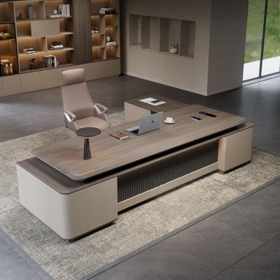 - Layout: Open plan workspace with a dedicated executive suite and a kitchenette.