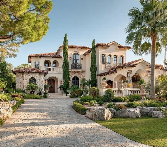 - Arezzo captures the rustic warmth of Tuscany with earth-toned stucco, terracotta roof tiles, and mature cypress trees that provide genuine privacy.