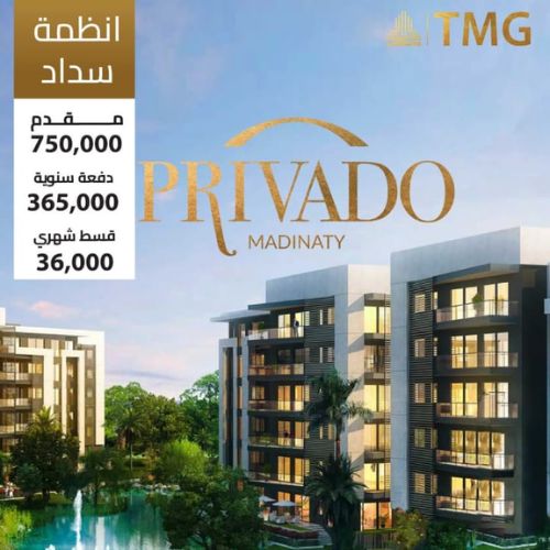 Privado spans 270 feddans within Madinaty, offering 9,900 residential units ranging from 60 to 180 square meters. Pricing starts at 6,500,000 EGP with flexible payment options including 0% down payment and 10-year installments.