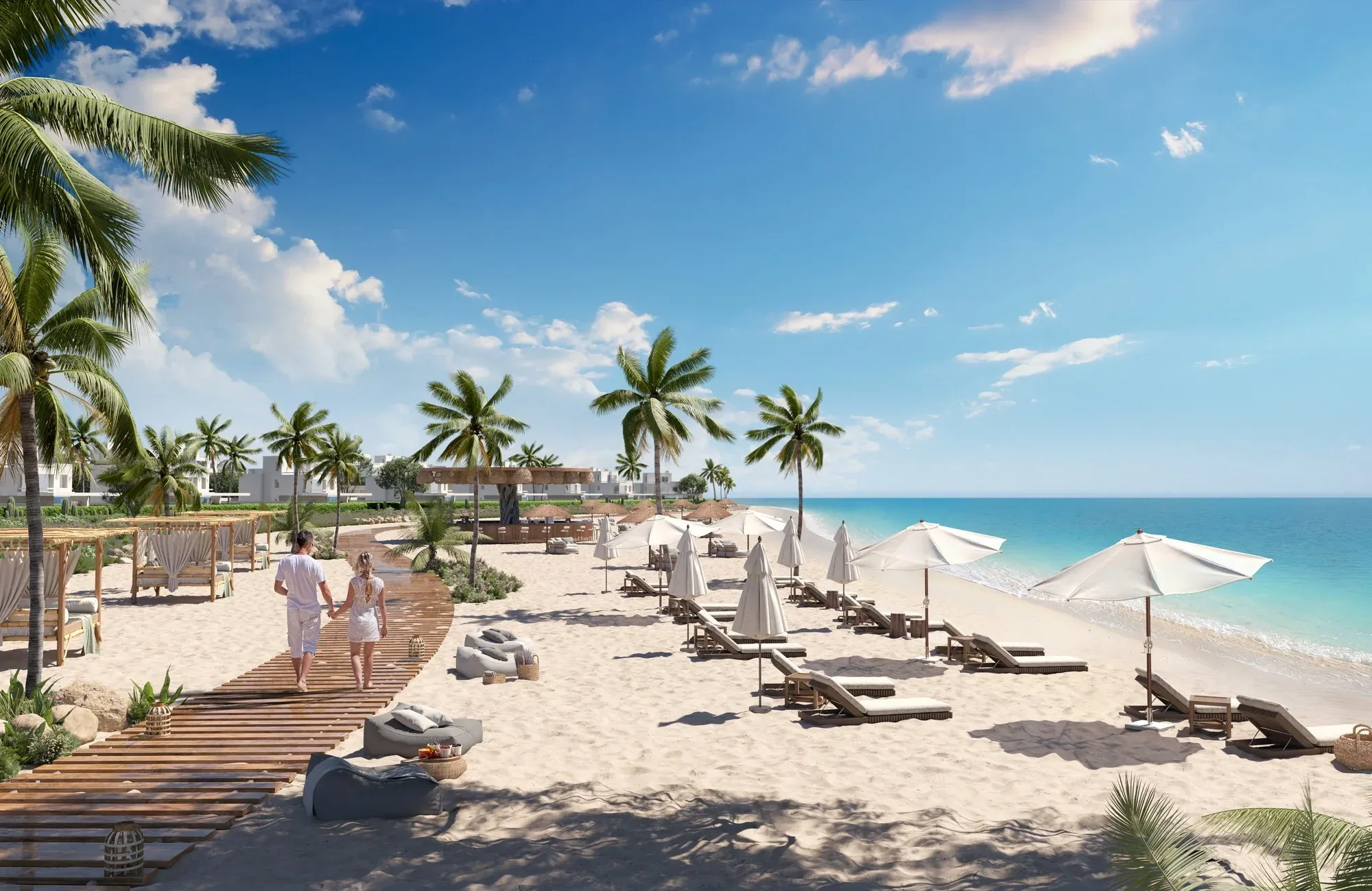 Investing in a property within this resort means securing a “seal of quality.” The project transports you to the idyllic Greek islands with whitewashed architecture and vibrant blue accents across iconic neighborhoods like Santorini, Mykonos, and Skala.