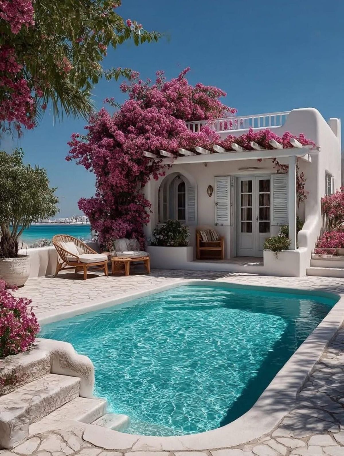- Designed with a “Greek Plage” aesthetic, featuring white walls, blue domes, and shaded internal courtyards.